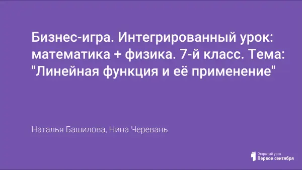 Бизнес-игра. Интегрированный урок: математика + физика. 7-й класс. Тема: "Линейная функция и её применение"