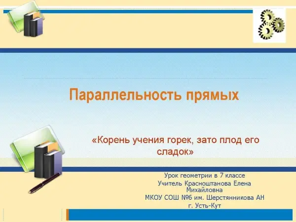 Это обобщающий урок из начального цикла уроков, которые входят в параграф «Сумма углов треугольника». В решении задач на доказательство проверяются знания предыдущих тем это «Признаки равенства треугольника» и «Равнобедренный треугольник». Прилагается презентация к уроку.