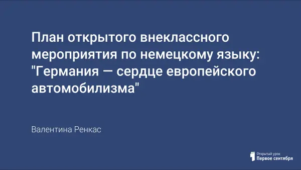 Ребята Центра образования получают профессиональную подготовку по 14 рабочим профессиям и вместе с аттестатом о полном среднем образовании получают свидетельства о рабочей профессии. У школьников снижена учебная мотивация к немецкому языку. Поэтому для поддержания и повышения интереса к языку, активизации коммуникативной и учебно-познавательной деятельности школьников провожу профильно-ориентированные уроки и внеклассные мероприятия. Предлагаю методическую разработку внеклассного мероприятия в группе "Автослесарь" - "Германия - сердце европейского автомобилизма".