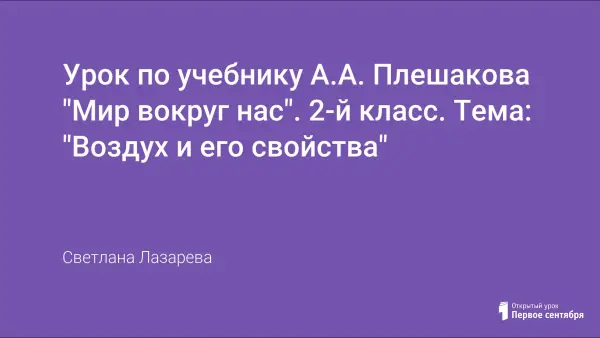 Разработка урока, цели которого познакомить учащихся с воздухом: его свойствами, значением для всего живого; учить наблюдать, делать выводы; воспитывать бережное отношение к природе.