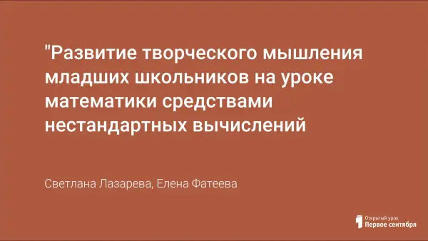 "Развитие творческого мышления младших школьников на уроке математики средствами нестандартных вычислений