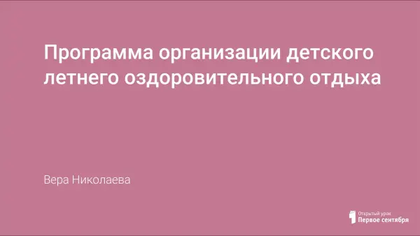 Лето – замечательная пора отдыха детей. Дети отправляются в детские лагеря, санатории, отдыхают в летних пришкольных лагерях. В условиях летнего пришкольного лагеря, отдых детей уникален с точки зрения организации самостоятельной жизнедеятельности личности в свободное время. Следует помнить, что лагерь – это не продолжение школьного образовательного процесса. Это совсем иной кусочек жизни ребёнка. Это – его отдых, наполненный ярким впечатлениями и только хорошим настроением.