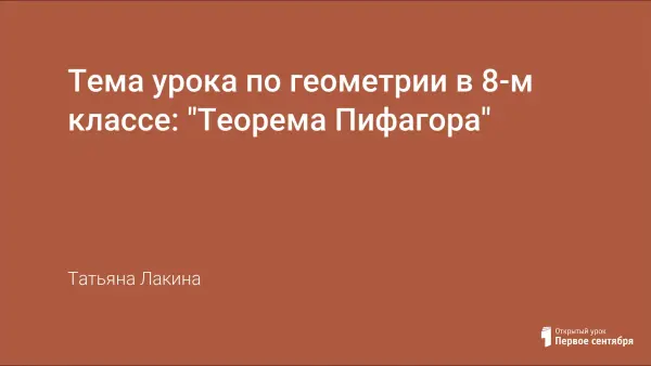 Представляю урок геометрии по учебнику "Геометрия 7-9", автор Л.С. Атанасян по теме "Теорема Пифагора". Целью данного урока является обеспечение понимания доказательства теоремы и применение ее для решения задач.