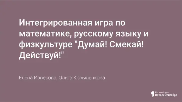 Интеллектуальная игра "Думай, смекай, действуй!" показывает, как можно интегрировать три предмета: русский язык, математику и физкультуру в работе с разновозрастными группами.