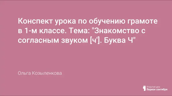 Разработка урока, цели которого сформировать понятие о звуке [ч'] как о мягком согласном звуке; знакомство с буквой Ч; развитие фонетического слуха, техники чтения, логического мышления, внимания, речи учащихся; обогащение словарного запаса.