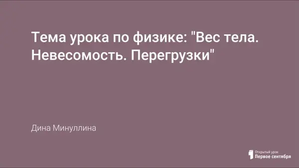 Представлен обобщенный урок, целью которого является повторение понятий веса тела, выяснение причин невесомости, перегрузки, а также использование теории в практической жизни и деятельности человека.