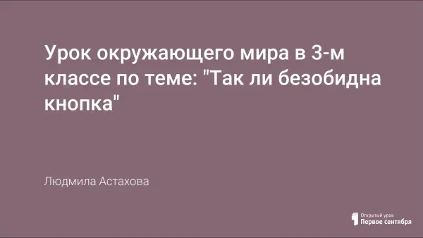 Урок знакомит учащихся 3-х классов с понятием "кнопка". Кнопки бывают разные: канцелярская кнопка, кнопка на одежде, на телефонах и т.д.