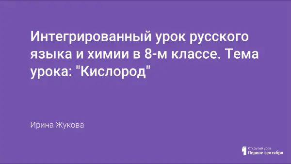 Интегрированный урок русского языка и химии в 8-м классе содержит материал для повторения и обобщения изученного по этим предметам. На уроке учащиеся повторяют все разделы русского языка, обобщают знания о кислороде, о его открытии и свойствах. Много внимания уделяется развитию речи, развитию логического мышления, научному стилю речи, работе со словарями. На уроке организована групповая работа, в результате которой, у учащихся формируется навык взаимодействия и сотрудничества.