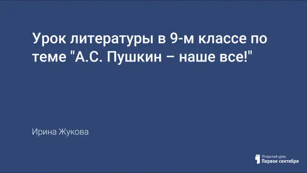 Итоговый урок литературы в 9-м классе содержит материал для повторения и обобщения знаний о лирике Пушкина и других поэтов XIX–XX века, посвятивших свое творчество А.С. Пушкину, об увековечивании его имени в различных произведениях искусства. Много внимания уделяется выразительному прочтению наизусть отрывков стихотворений разных поэтов, прослушиванию арий из опер и романсов, рассматриванию картин известных художников, посвященных биографии и творчеству А.С. Пушкина.