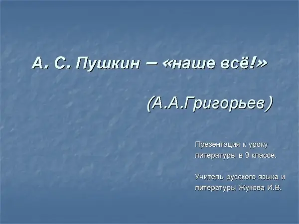 Урок литературы в 9-м классе по теме "А.С. Пушкин – наше все!"