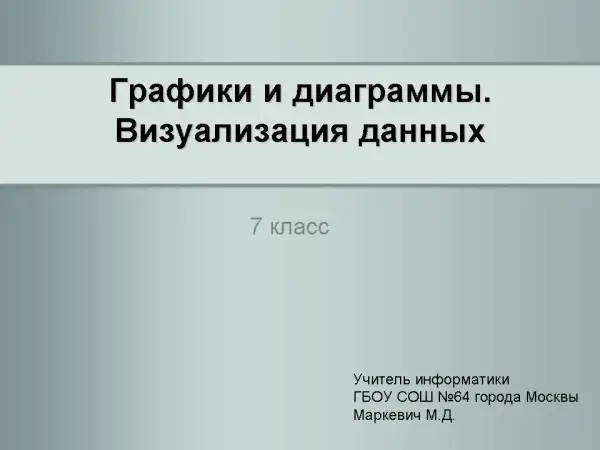 На примерах из жизни дается ответ на проблемный вопрос: «Как представить большой объем информации в наглядном виде?». Рассматриваются возможности табличного процессора Excel для визуализации числовых данных. Формируется навык построения и решения задач различных видов деловой графики табличного процессора.