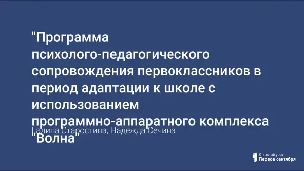 "Программа психолого-педагогического сопровождения первоклассников в период адаптации к школе с использованием программно-аппаратного комплекса "Волна"
