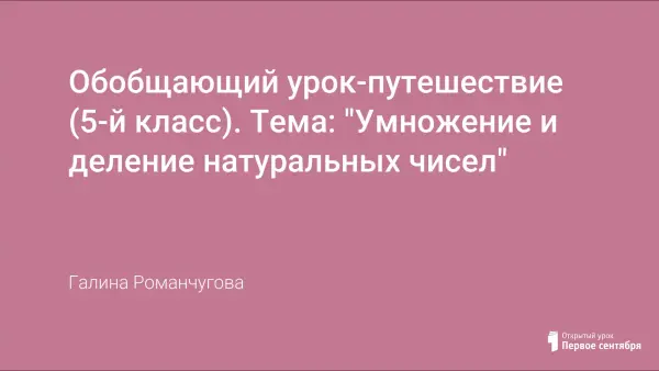 Представляю обобщающий урок-путешествие, проведённый в 5-м классе по теме "Умножение и деление натуральных чисел".
