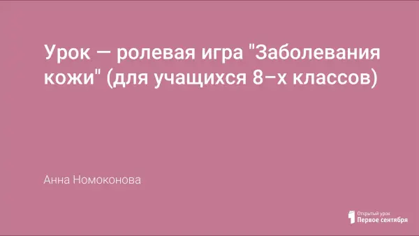 Урок расширяет знания учащихся о заболеваниях кожи; формирует гигиенические навыки; развивает навык самостоятельной работы учащихся с дополнительной литературой, видеофрагментами, интерес к предмету.