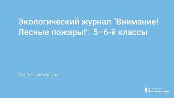 Мероприятие по экологии рекомендовано для учащихся 5‒7-х классов с презентацией можно провести на уроках экологии в День Земли (22 апреля). Форма: экологический журнал. Цель: расширение знаний учащихся о возникновении лесных пожаров и их последствиях; познакомить учащихся с экологическими проблемами; закрепить и расширить знания учащихся о правилах поведения в лесу; показать важность сохранения лесных сообществ.