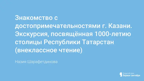 Знакомство с достопримечательностями г. Казани. Экскурсия, посвящённая 1000-летию столицы Республики Татарстан (внеклассное чтение)