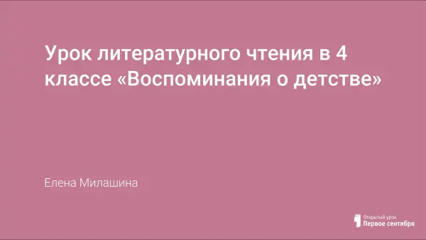 Цель работы - Создание представления о детстве на основе изученных произведений, а также на основе восприятия новых произведений. Развитие творчества, воображения, ассоциативного, образного мышления, фантазии. Развитие коммуникативной и информативной компетентности, умения работать в группе. Создание положительной мотивации учения. Воспитание любви к поэзии.