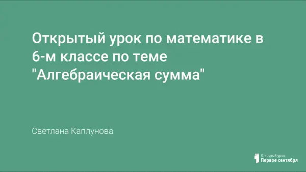 Материал представляет собой конспект открытого урока по математике по учебнику Л.Г. Петерсон. Основной целью урока является формирование способностей к записи алгебраической суммы и нахождению её значения.