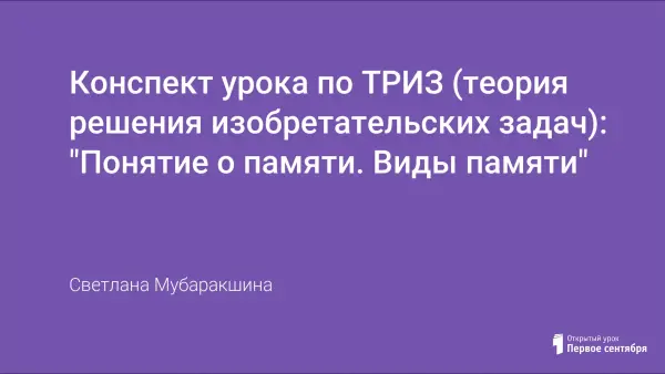 Представлена разработка урока для дошкольного и младшего школьного возраста, цели которой – ненавязчиво пополнить, расширить знания детей; показать, что бывают различные виды памяти, и дать рекомендации по заучиванию.