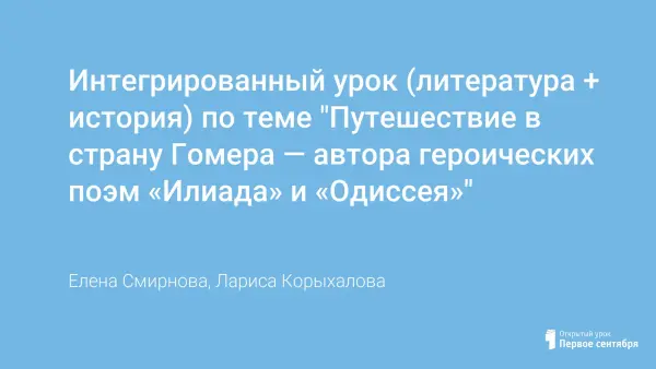 Данный урок представляет вариант ознакомления учащихся 5-го класса с древнегреческим эпосом - "Илиадой" и "Одиссеей". Форма проведения урока способствует активизации имеющихся у учащихся знаний о древнегреческих мифах, позволяет познакомить с историческими событиями, лежащими в основе мифов о Троянской войне, с героями, воспетыми Гомером. Различные формы работы на уроке, использование презентации, раздаточного материала, аудио- и видеофрагментов, делают урок информативным, наглядным и интересным.