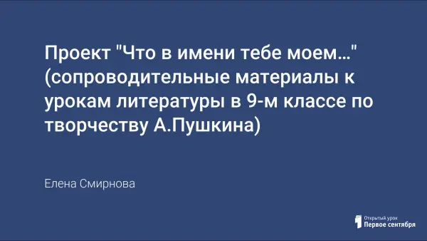 Тематический проект «Что в имени тебе моём…», связанный с личностью и творчеством А.С. Пушкина, даёт возможность более глубокого понимания проблематики его произведений, способствует формированию информационной и коммуникативной компетенций учащихся.