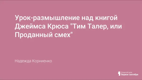 Урок-размышление над книгой Джеймса Крюса "Тим Талер, или Проданный смех"