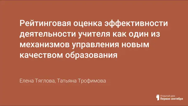 Рейтинговая оценка эффективности деятельности учителя как один из механизмов управления новым качеством образования