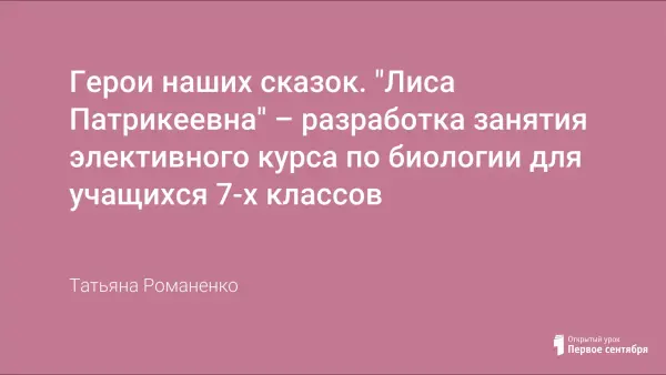 На уроках биологии учитель сталкивается с проблемой нехватки времени для более подробного изучения издавна знакомых и интересных учащимся животных. Это возможно решить за счет часов элективного курса. Цикл занятий "Герои наших сказок" позволяет ученикам самостоятельно углубленно изучить материал, выступить с подготовленными сообщениями на занятиях, получить новую информацию из видеофильма. Возможности элективного курса для изучения дополнительного материала неограничены.