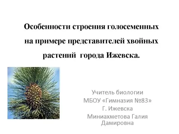 Цель урока: обобщить, систематизировать и углубить знания о голосемянных на примере хвойных растений города Ижевска.
