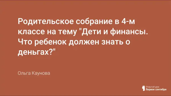 Воспитать у ребенка правильное отношение к деньгам и материальным ценностям так же важно, как научить его вести себя за столом. В сегодняшней жизни страны отношение к деньгам изменилось в корне. С этого слова снято табу, и звонкое «деньги» стало едва ли не самым распространенным словом в обиходе. Значит, и родительский опыт в вопросе финансового воспитания нуждается в методах, которые отвечали бы духу времени. Родительское собрание в 4-м классе «Дети и финансы» поможет родителям ответить на самые распространенные вопросы и выбрать правильный путь взаимоотношений с детьми.