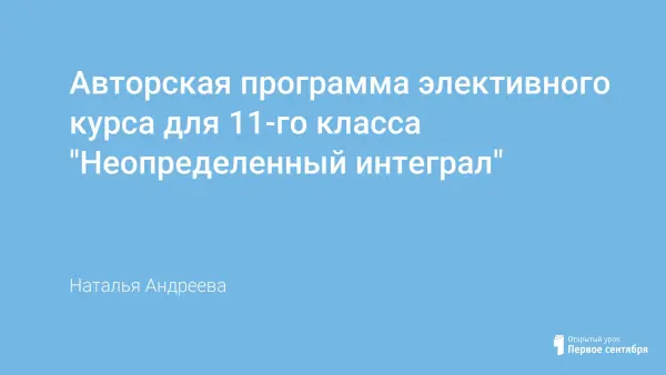 Программа элективного курса включает три раздела: пояснительную записку; основное содержание с распределением учебных часов по темам курса; требование к уровню подготовки учащихся, приложение, которое представлено в виде теоретической и практической части. При изучении элективного курса получает развитие содержательная линия начал математического анализа. Основной целью этого курса является знакомство учащихся с общими методами и приемами интегрирования различных функций.