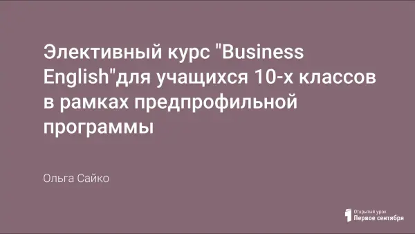Предлагаю программу элективного курса, предназначенную для учащихся профильных 10-х классов. Содержание данного курса позволяет познакомить учащихся с основными понятиями: "маркетинг", "бизнес", "офис", "общение по телефону", "деловые письма". Это представляется особенно актуальным, так как вооружает учащихся элементарными знаниями делопроизводства и может пригодится для дальнейшего образования.