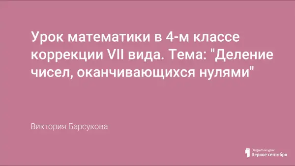 Урок математики в 4-м коррекционном классе 7 вида, главной целью которого является закрепление и систематизация знаний учащихся по теме: «Деление чисел, оканчивающиеся нулями».