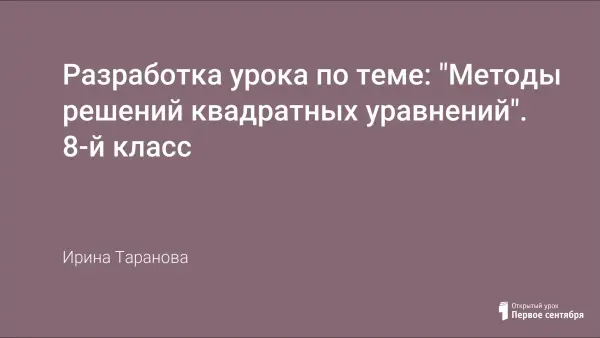 Разработка урока по теме: "Методы решений квадратных уравнений". 8-й класс