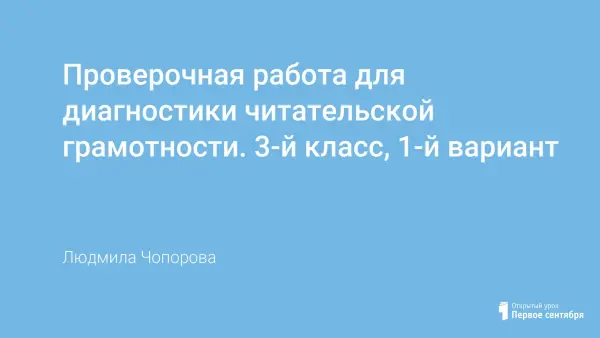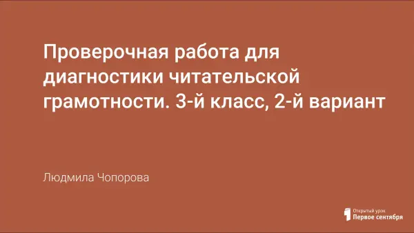 Представлен вариант проверочной работы для диагностики читательской грамотности для 3-го класса.