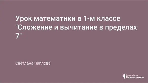Тема урока " Сложение и вычитание в пределах 7". Урок - путешествие в зимний лес. Предполагает закрепление знания состава числа 7, повторение соотношения между частью и целым, развитие творческих способностей, воспитание положительной мотивации учения и любви к природе.