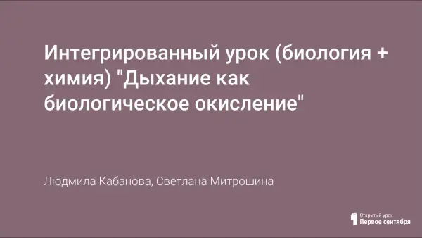 Интегрированный урок (биология + химия) "Дыхание как биологическое окисление"
