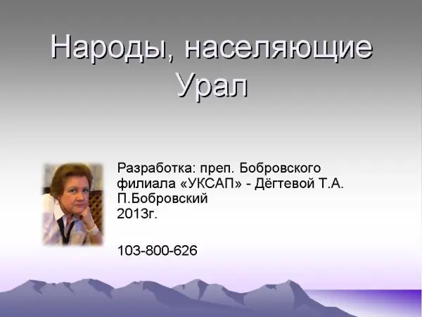 Народы Урала имеют очень древнее происхождение. Сегодня Урал – многонациональный, исторический, промышленный и экономический район. Изучение художественной культуры родного края формирует не только эстетическое сознание студентов, но и ответственность за сохранение культурных традиций своего края.