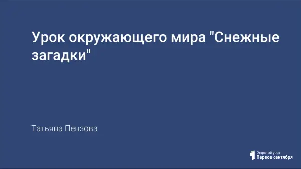 В работе представлен материал урока окружающего мира в 1 классе по теме «Снежные загадки», на котором учащиеся получают представление о сезонных изменениях в природе, знакомятся с различными видами снежинок и опытным путем устанавливают, чем может быть загрязнен снег.