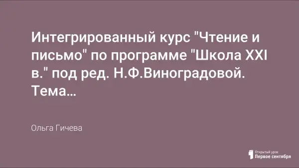 Представлена разработка интегрированного урока, которая позволила показать, как можно слить в одно целое урок чтения и русского языка, сделав, таким образом, эти предметы более доступными и интересными для детей.