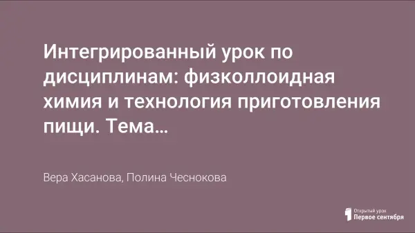 Интегрированный урок по дисциплинам: физколлоидная химия и технология приготовления пищи. Тема урока: "Физико-химические изменения углеводов продуктов питания в процессе технологической обработки"