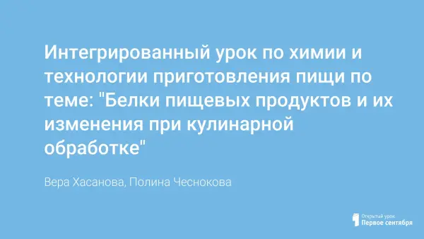 Интегрированный урок по химии и технологии приготовления пищи по теме: "Белки пищевых продуктов и их изменения при кулинарной обработке"