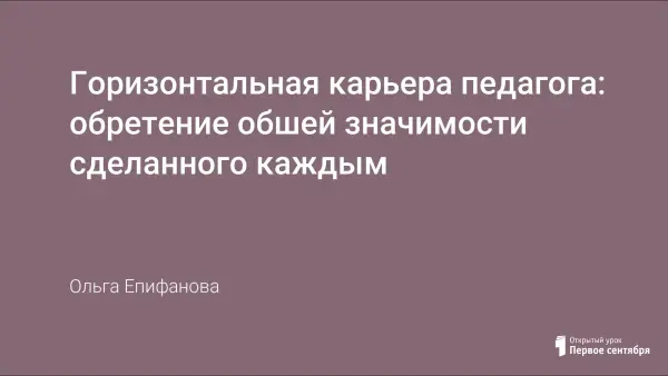 Построение горизонтальной карьеры для педагога - не обуза, а возможность применить свои силы с различных сторон, реализовать свой творческий потенциал, постоянно повышать свой профессионализм и мастерство, обретая радостное и неустанное движение вперёд, предотвращая синдром "эмоционального выгорания". Горизонтальную карьеру необходимо рассматривать как переход от индивидуальных достижений к обретению общей значимости сделанного каждым. Это является важным и для педагогического, и для родительского и для ученического сообществ.