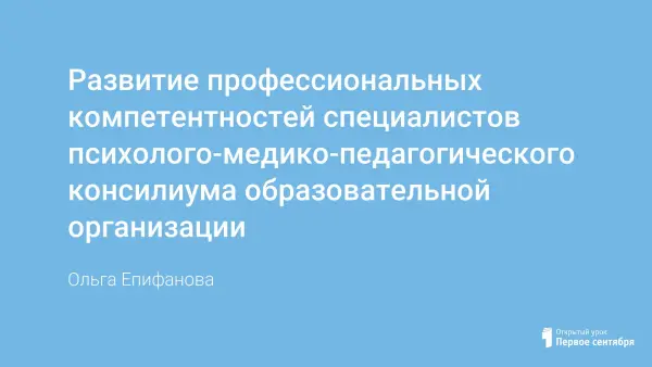 «Психолого-медико-педагогический консилиум – сегодня – мультидисциплинарный, завтра – междисциплинарный. Выявляет, наблюдает, проектирует. Постепенно становится важнейшим компонентом повышения компетентности педагога. Тактический ресурс оптимистического сопровождения ребёнка с ограниченными возможностями здоровья»