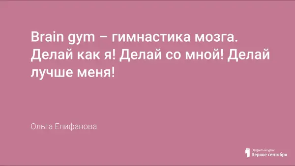 Мы знаем, что слова «трудно» и «трудиться» однокоренными являются, но как же по смыслу они различаются! «Трудно» в нашем понятии со словом «тяжело» сходится, но разве трудиться всегда тяжело приходится? Разве не бывает труд лёгким, весёлым, непринуждённым, азартным, неутомительным? Мне помогает гимнастика мозга – Вrain gym? Во-первых, она убирает зажим. Во-вторых, позволяет выбирать варианты поведения, расширять арсенал балансов, заменять комплексов упражнения, В-третьих, позволяет, пробовать, выдумывать, вершить, фантазировать, труд делать лёгким, себя гармонизировать!
