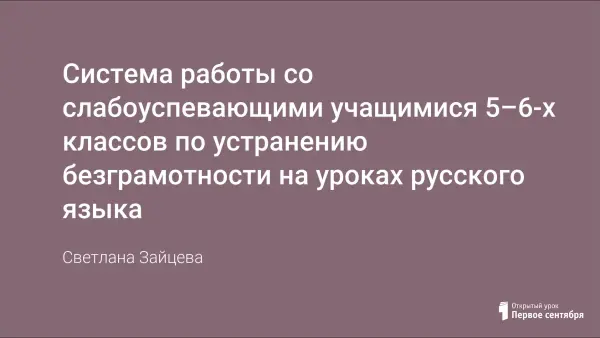 В статье представлена целостная, практически проверенная система коррекционно-развивающей работы со слабоуспевающими учащимися среднего звена (5–6-е классы) на уроках русского языка. Описываются формы и методы устранения функциональной безграмотности, подробно рассматриваются причины пробелов в орфографической и пунктуационной грамотности. Обоснована роль диагностики, индивидуального маршрута ученика, дифференцированного подхода, систематической работы с базовыми языковыми единицами.