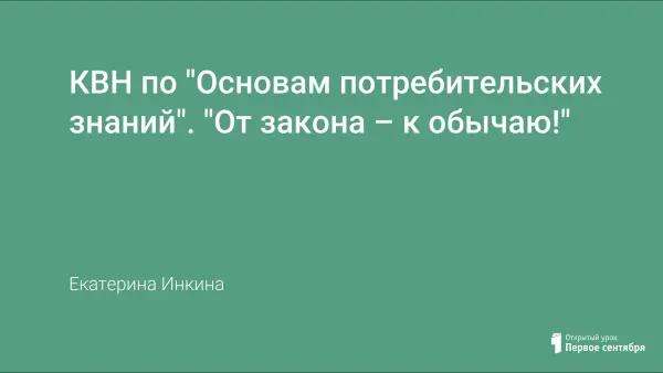 КВН по "Основам потребительских знаний" от закона - к обычаю!" может стать итоговым занятием в разделе "Потребитель в экономике" в курсе Экономики 9-11 классов.