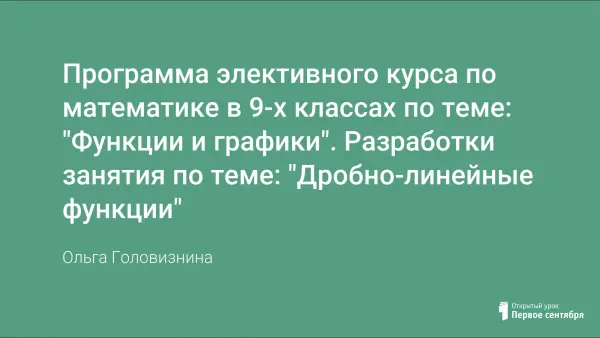 Программа элективного курса по математике в 9-х классах по теме "Функции и графики" предназначен для учащихся, склонных к практическому и теоретическому мышлению. Способствует дальнейшему выбору профильного обучения, позволяет проводить теоретические исследования, решение прикладных задач, конструирование и моделирование, поиск различной информации, решение задач повышенной трудности. Программа рассчитана на 34 аудиторных часа, она предусматривает формы организации учебного труда: беседы, лекции, семинары, научно-исследовательскую работу, практические и самостоятельные занятия, индивидуальную работу по темам, работу со справочным материалом, выдвижение гипотезы и т.п.