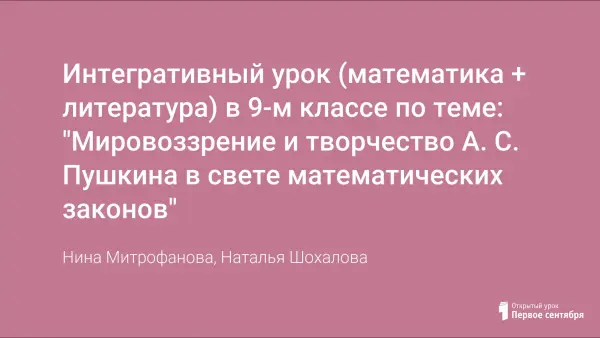 Интегративный урок (математика + литература) в 9-м классе по теме: "Мировоззрение и творчество А. С. Пушкина в свете математических законов"