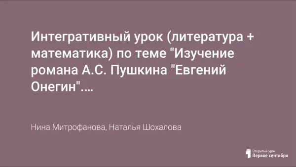 На уроке ученики приобретают системные качественные знания по математике (геометрические фигуры: гексаграмма и октограмма, числа Фибоначчи); и литературе (система образов, авторские отступления и композиция романа А. С. Пушкина «Евгений Онегин»);